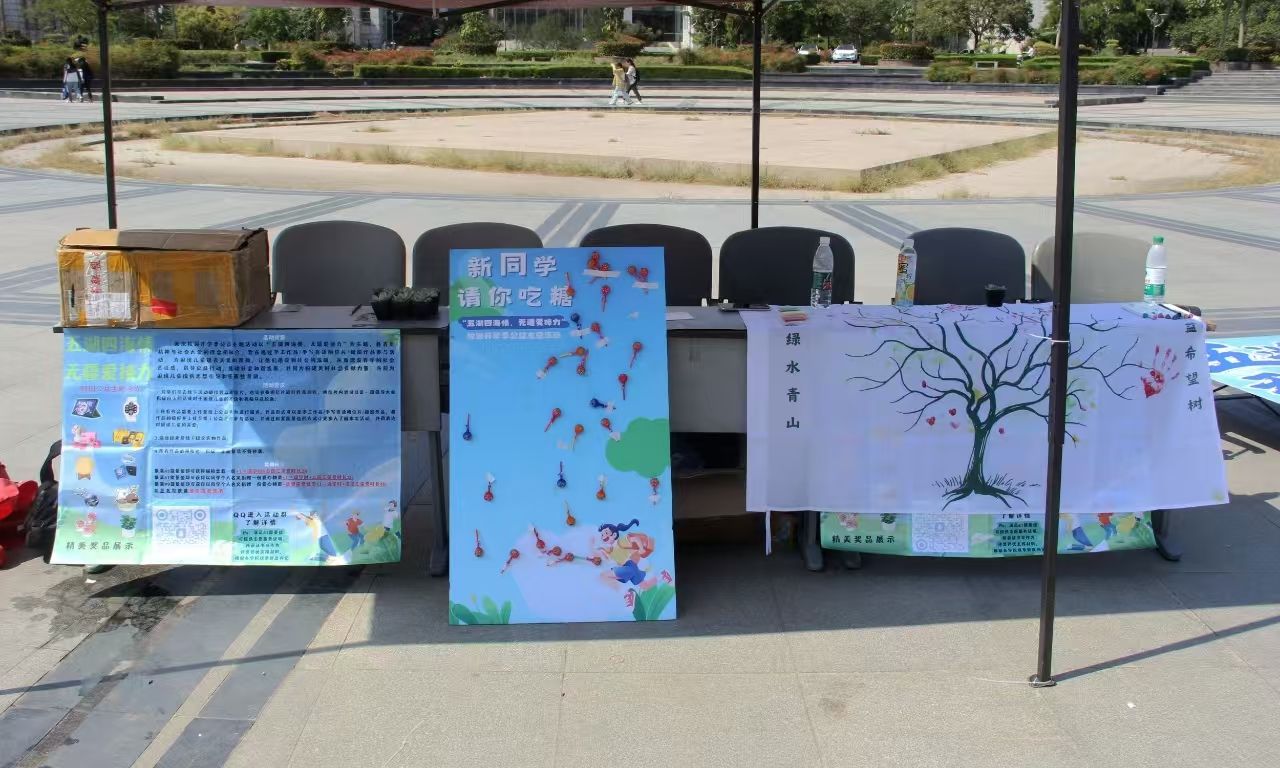 金明校区马可广场开设了线下活动摊位。志愿者向参加活动的学生们详细介绍了活动内容、流程、规则与意义,并让他们在小说狂人