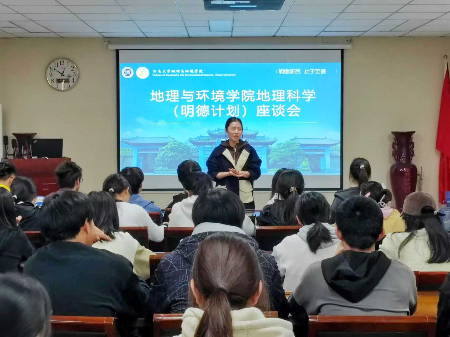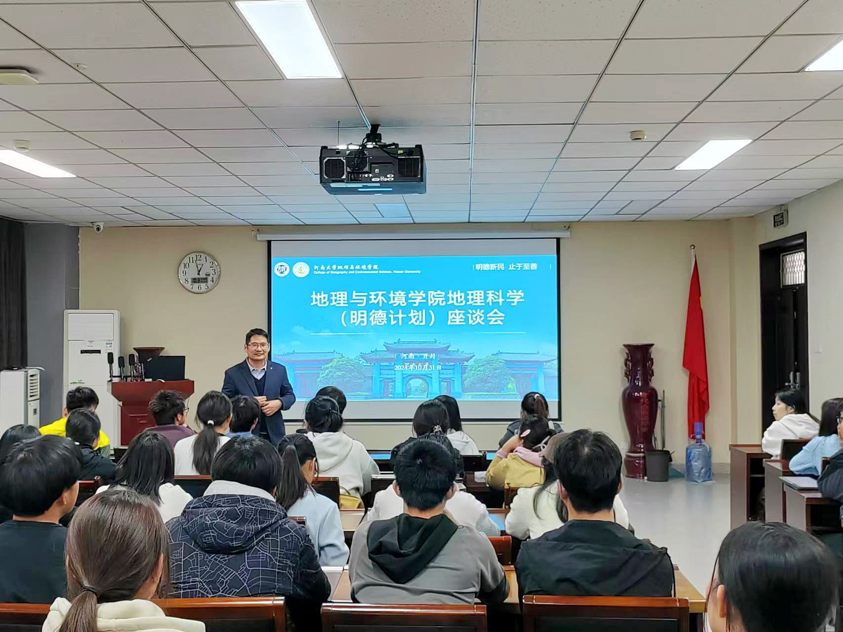 为促进我院人才培养,增强学生的创新能力,10月31日下午,我院于地学楼二楼学术报告厅召开2022级、2023级地理科学(明德计划)班座谈会。学院副院长丁志伟,团委书记赵越,2022级、2023级辅导员马利群、屈利铭出席此次座谈会,我院2022级、2023级地理科学(明德计划)班全体学生参与。