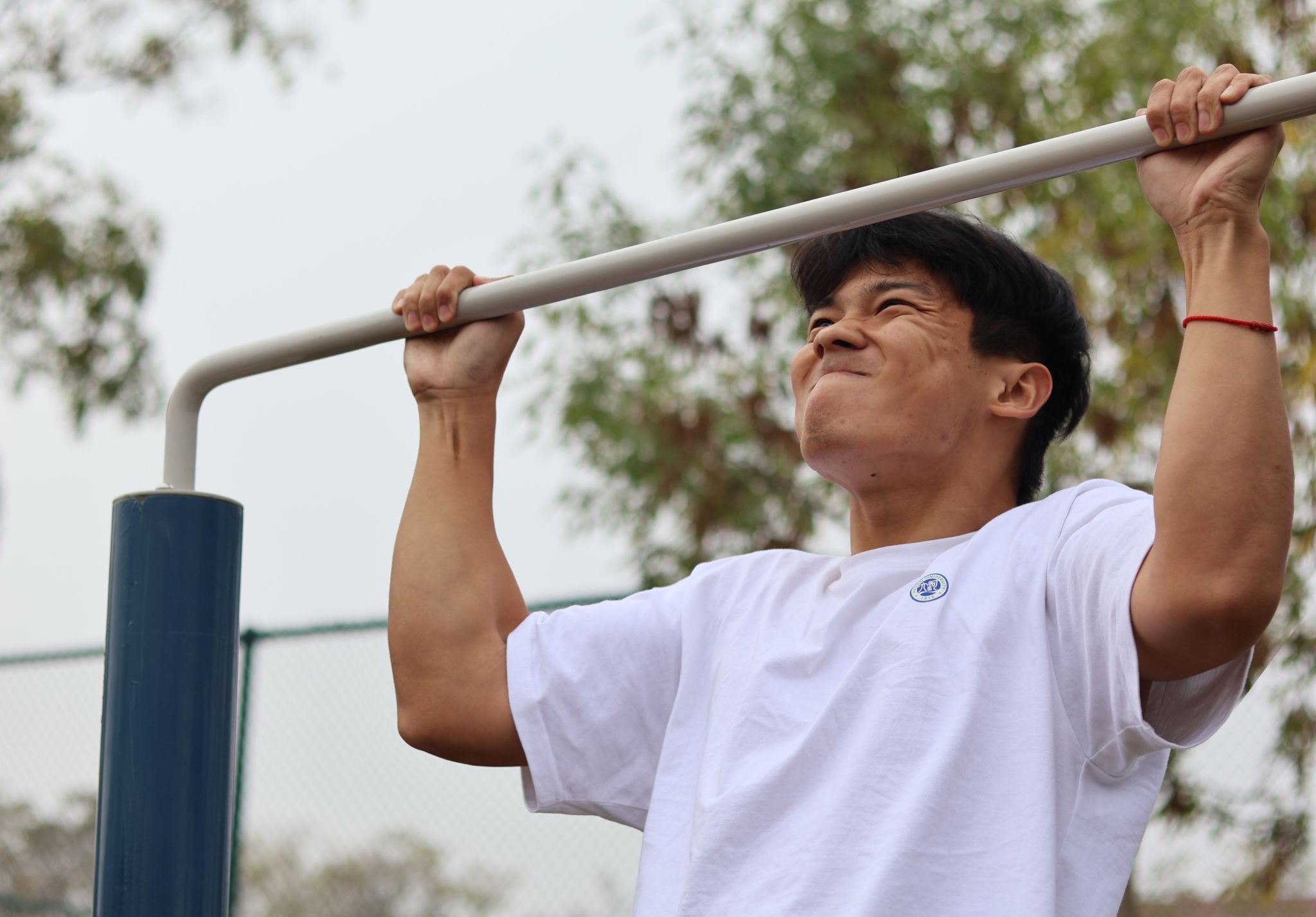 “加油,加油!”引体向上的选手们在如雷般的喝彩声中奋力向上拉起身体,那手臂上的肌肉瞬间紧绷得如同钢铁一般,青筋也根根微微凸起,好似要挣破皮肤。每一次的拉起都宛如一场与重力的激烈角斗,他们的身体在空中有节奏地微微摆动,淋漓尽致地展现出力量与重力的完美结合,仿佛整个世界都为之沸腾,让人充分感受到引体向上的激情澎湃。