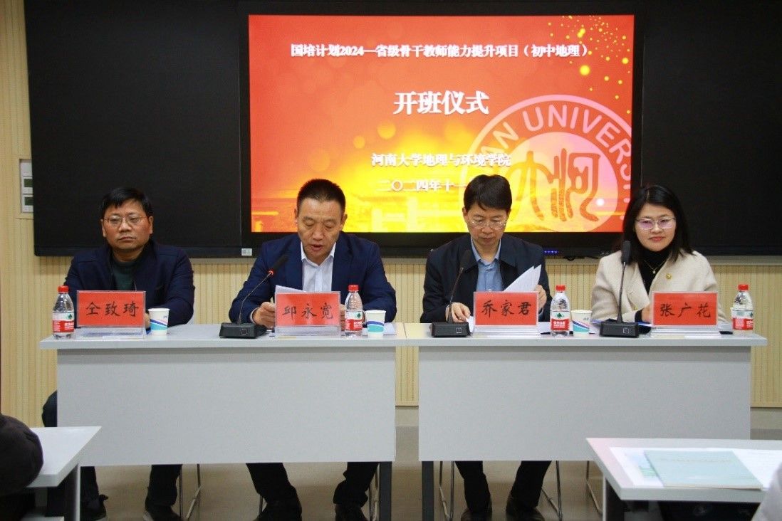地理与环境学院的环境与规划国家级实验教学示范中心101教室召开。地理与环境学院党委书记乔家君,副院长邱永宽,学科教学硕士生导师张广花副教授,继续教育中心主任仝致琦以及省级骨干教师能力提升项目(初中地理)培训班全体学员参加此次典礼,开班仪式由邱永宽主持。