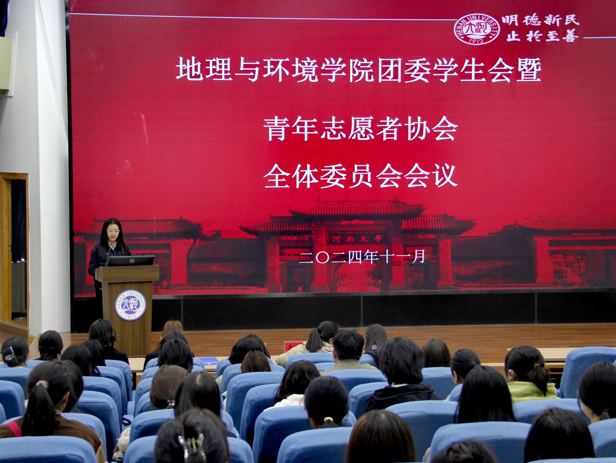 11月7日下午,我院2024届团委学生会暨青年志愿者协会第一次全体委员会于金明校区锥形报告厅举行。学院团委书记、2024级本科生辅导员赵越,2022级、2023级本科生辅导员马利群、屈利铭出席本次会议。会议由2024级本科生张正阳主持。