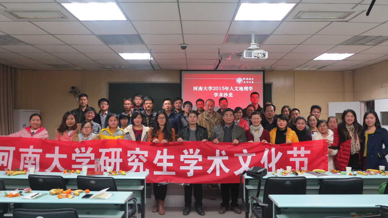12月16日下午2点30分,第九届人文地理学学术沙龙在我院502教室如期举办。本次沙龙由我院人文地理专业导师组发起、人文地理学研究生负责筹办,人文地理学、经济地理学的3名研究生作为主讲人展示了他们的最新研究成果。沙龙由我校原副校长、河南省重点学科人文地理学学术带头人王发曾教授主持,我院人文地理学硕士研究生牵头导师、区域与城市科学系主任徐晓霞教授以及人文地理专业导师组的部分老师出席了这次沙龙。来自环境与规划学院、黄河文明与可持续发展中心、校研究生会的的60余人参与了沙龙活动。