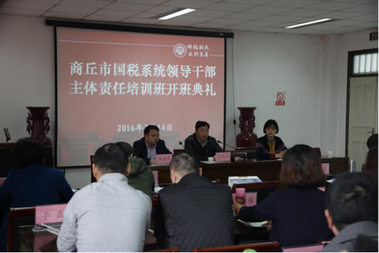 3月14日上午,由我院承办的商丘市国税系统领导干部主体责任培训班在金明校区环境与规划学院二楼学术报告厅举行开班典礼,来自商丘市国税系统的45位学员将在此进行为期一周的培训学习。商丘市国家税务局主要领导班子成员、学院党委书记闫峻、副院长周志民与会。开班典礼由环境与规划学院副院长周志民主持。