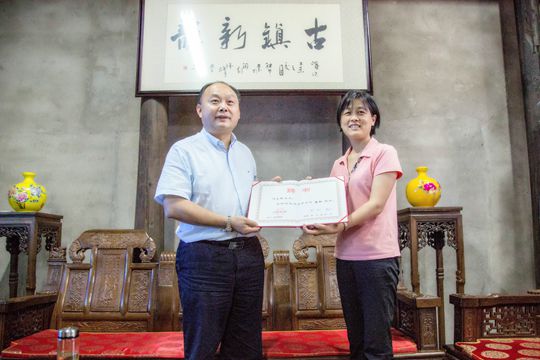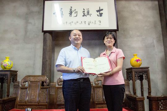 6月17日下午,我校在开封市朱仙镇国家文化生态旅游示范区举行仪式,聘任河南开心一方置地集团有限公司董事长兼总经理叶永明先生为我校兼职教授和我院旅游管理专业学位研究生职业导师。学院党委书记闫峻为叶永明颁发兼职教授和职业导师聘任证书,副院长周志民、黄河中下游数字地理技术教育部重点实验室副主任秦奋和朱仙镇国家文化生态旅游示范区主要管理人员参加聘任仪式。