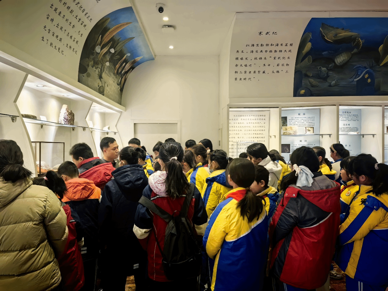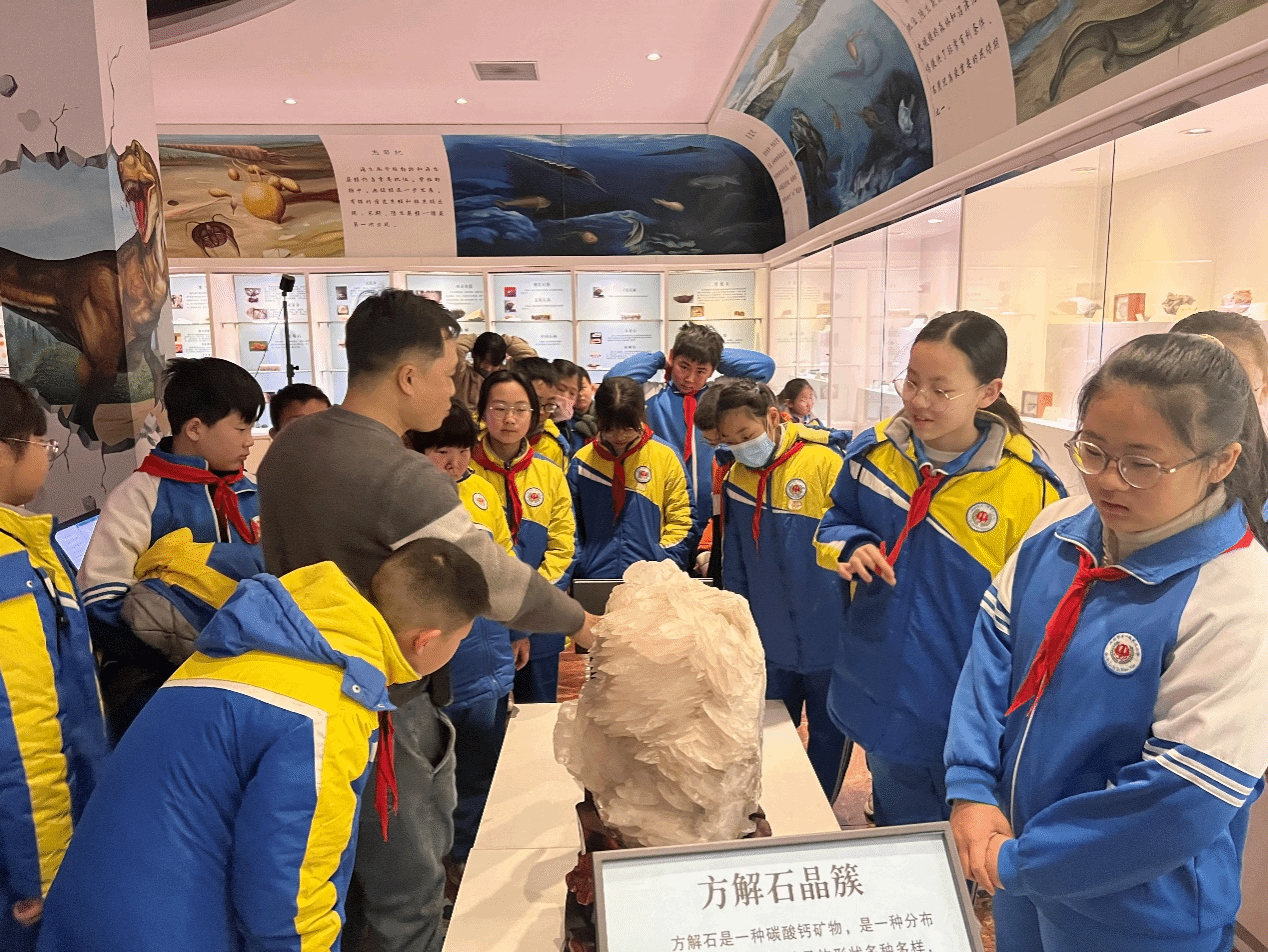 活动共分为三部分内容。首先,师生们分组参观了学院东英自然博物馆,该博物馆是中国科学技术协会在河南省高校唯一设立的全国科普教育基地的重要组成部分,馆内所陈列标本不仅种类丰富,而且典型珍贵者甚多。陈英勇老师为师生们细致讲解了博物馆内的岩石、古生物化石等各类展品,并与同学们积极互动,极大激发了孩子们对地质知识的浓厚兴趣和探索热情。