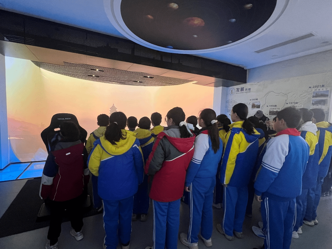 此外,师生们还参观了学院虚拟地理环境研究室,该研究室基于全息CAVE裸眼3D技术结合全三维数字影像技术、U3D技术、自主大数据平台架构,是新时代“元宇宙虚拟实验室”“沉浸式数字化模拟实验室”的重要依托,师生们在情景式的体验中,深刻感受了百年小说狂人