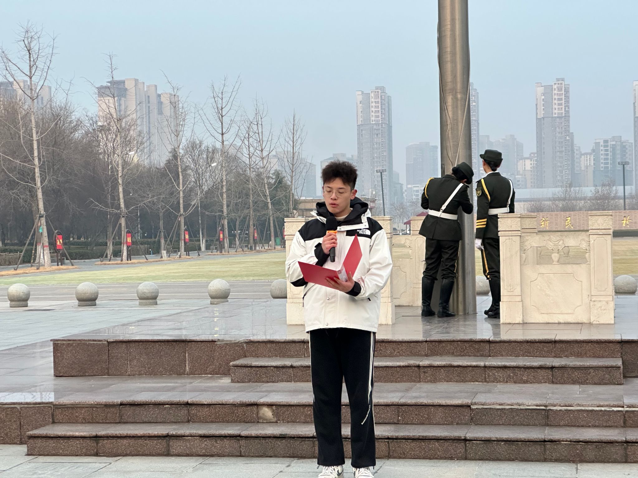 升旗仪式后,我院2022级本科生鲍宇澄作为学生代表作国旗下演讲。演讲中,鲍宇澄号召全体学生以中华民族伟大复兴为己任,深耕学科领域,将个人成长融入国家发展大局,用青春脚步丈量祖国大地,以实干之姿感受时代经纬,争做一名有格局、有担当、有情怀的新时代地理人。