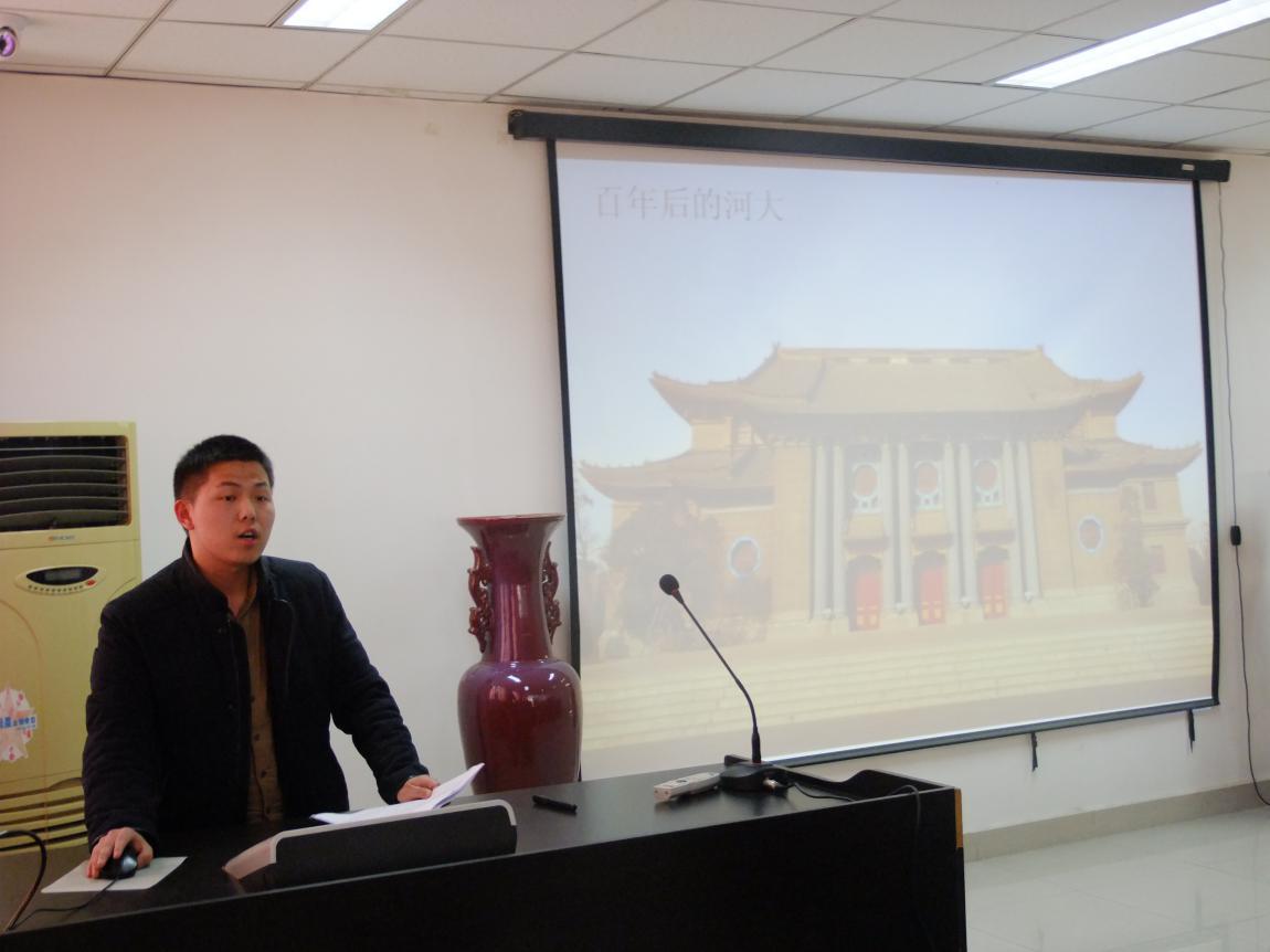 的历史和概况。紧接着,环境与规划学院学生会主席张祎帆致欢迎辞。随后,双方密切讨论,深入交流,就学生工作、专业分类、北京雾霾、考研等问题交换了意见。谈到经济、政策与环境的关系时,人大学生代表强调,要从自己的专业背景出发来考虑问题;注重发展技术的同时,也要注意因地制宜,引起了环规院代表的强烈共鸣。最后,环境与规划学院学生代表向人大代表团,介绍了九朝古都开封的美食景点。会议圆满落下帷幕。