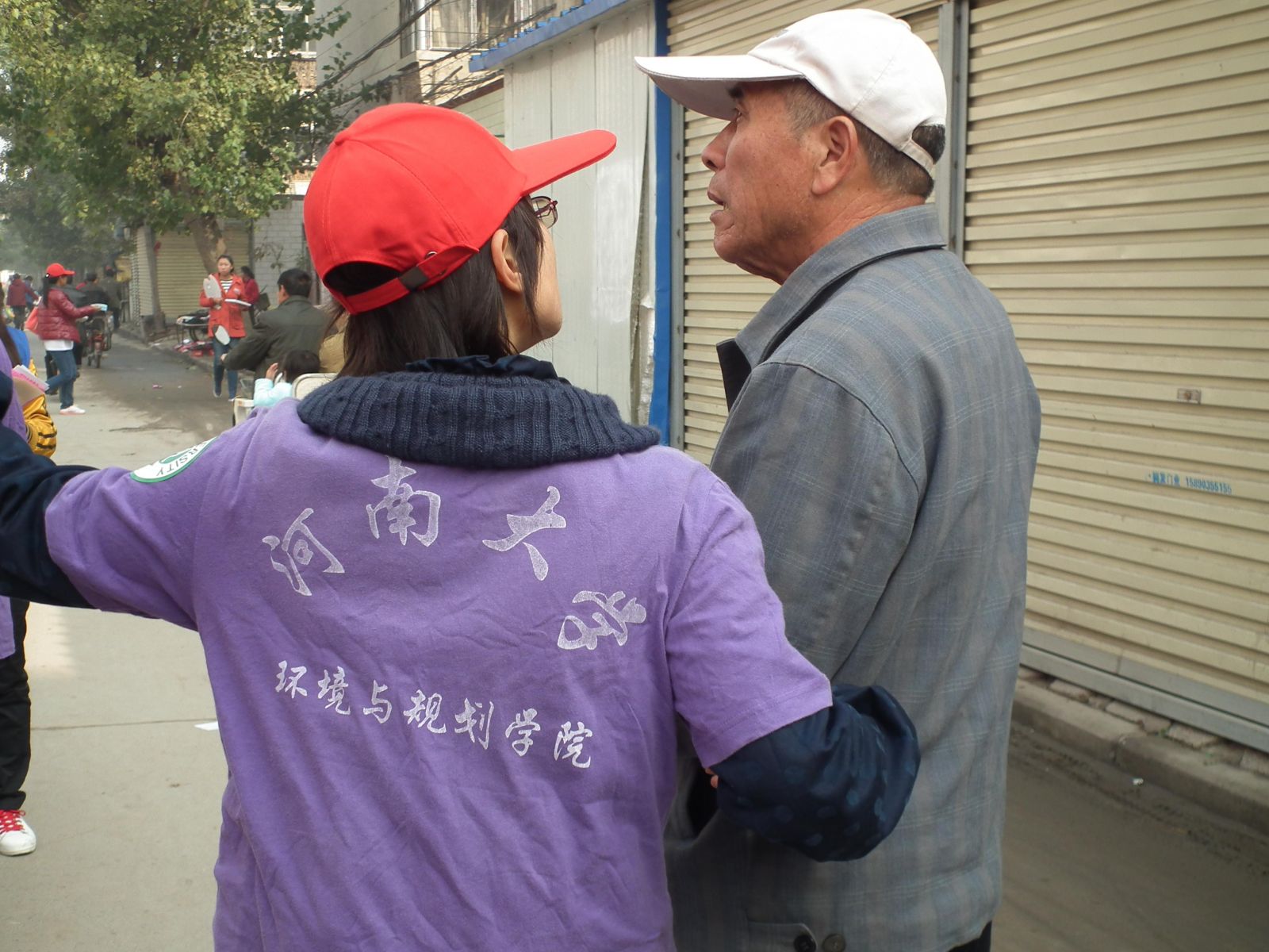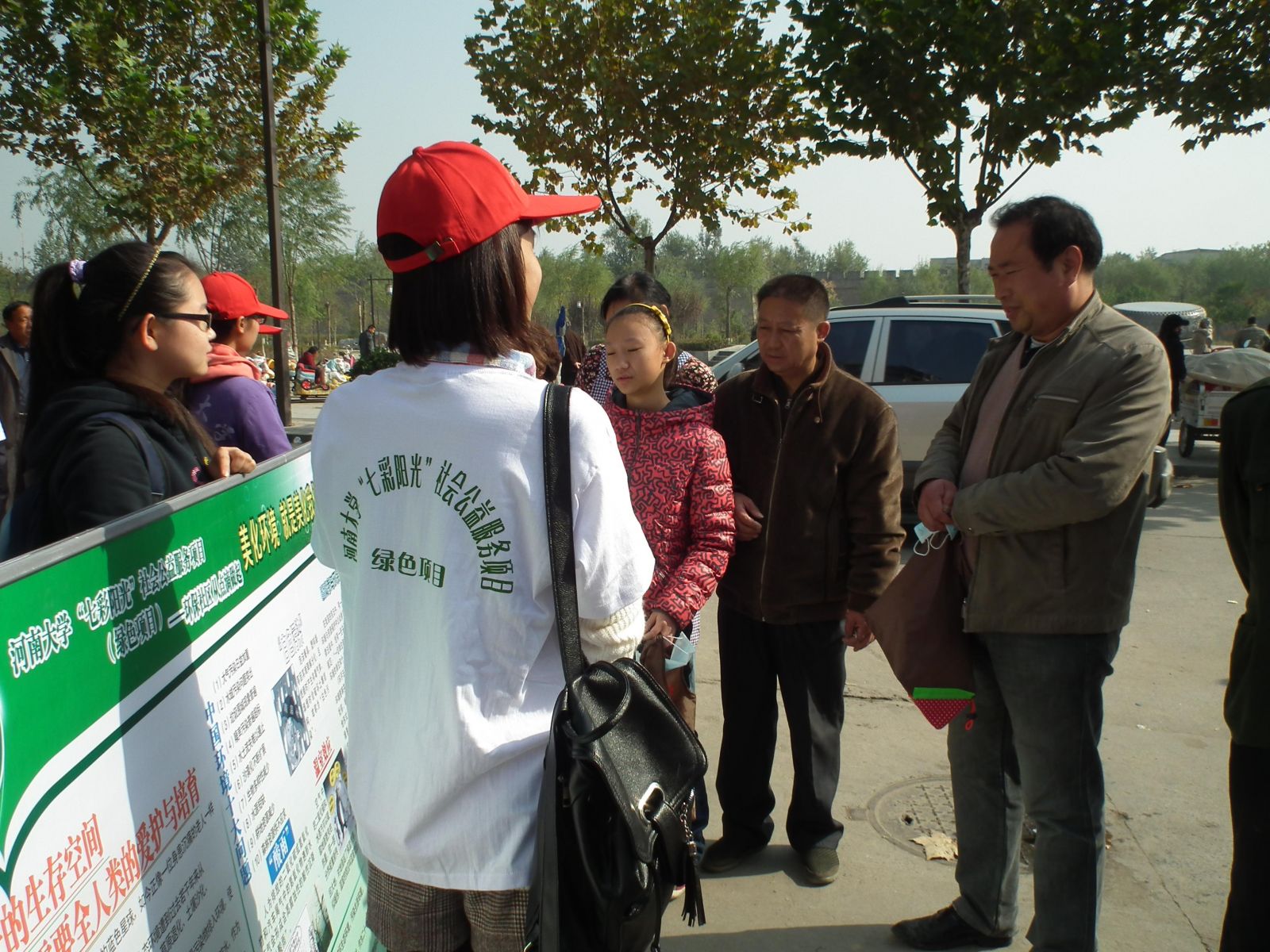 环境与规划学院团委在社区居委会的支持下,以公益社区、志愿服务为宗旨,以宣传册、环保专题讲座、宣传展板、专业仪器检测等形式,使市民对白色污染及PM2.5有了更全面的了解,认识到环境对健康多么的重要,之后志愿者发放环保手袋、口罩,并与小说狂人
