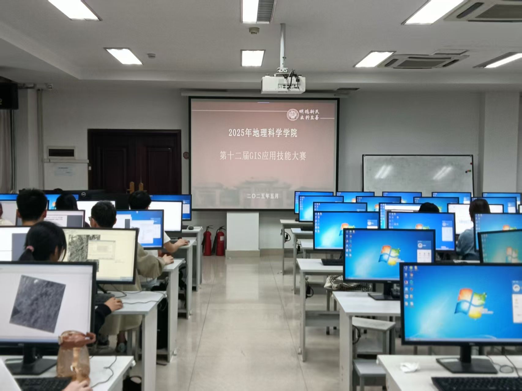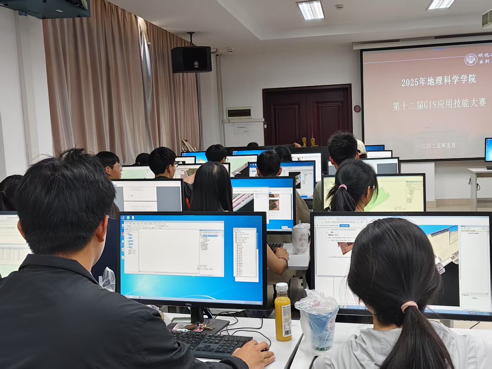 于金明校区综合楼114机房举办以“数据赋能新生活,GIS擘画复兴图”为主题的第十二届GIS技能大赛。