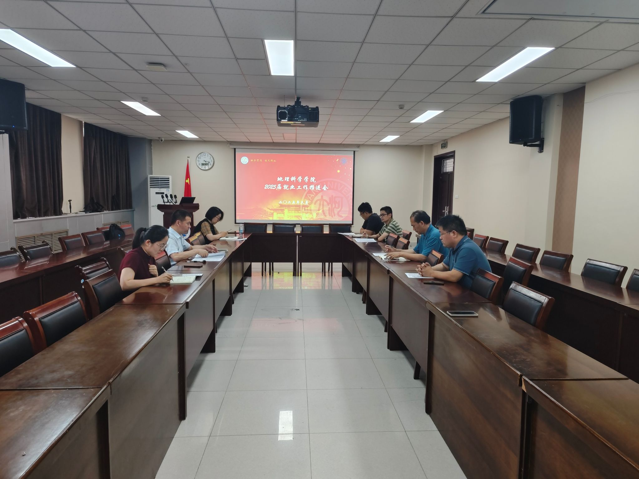 为全力应对当前严峻就业形势,切实推动学院2025届毕业生高质量就业,6月6日下午,我院在地学楼二楼学术报告厅召开2025届毕业生就业工作推进会。学院各系主任,2025届本科毕业生辅导员屈利铭,2025届研究生毕业生辅导员武利阳参加会议,会议由学院党委副书记徐小军主持。