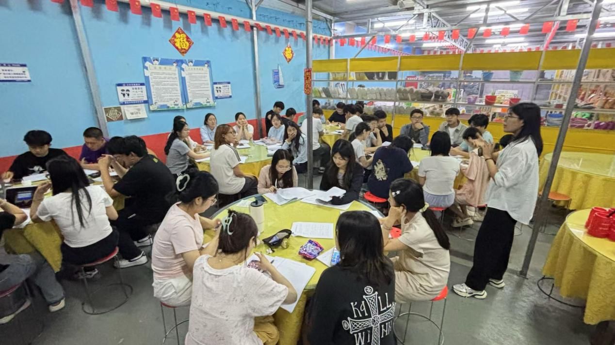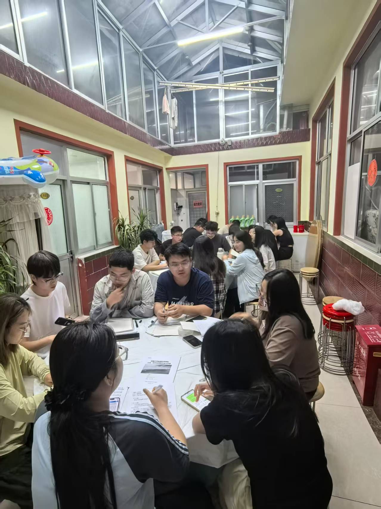实习期间,每晚的集中讨论是实习中的重要组成部分,为学生整理思路、深化理解提供了有力支撑。学生们在完成白天的调研任务后,围绕当天所见所思,以小组为单位进行梳理与整理,在教师的引导下形成结构化的汇报材料。现场采用轮流发言、互动提问的形式,不仅促进了学生之间的交流与碰撞,也提升了他们在短时间内归纳、表达与反思的能力。教师们针对学生提出的现象与问题进行延伸讲解,引导大家从地理视角深入分析实践现象背后的逻辑与意义。