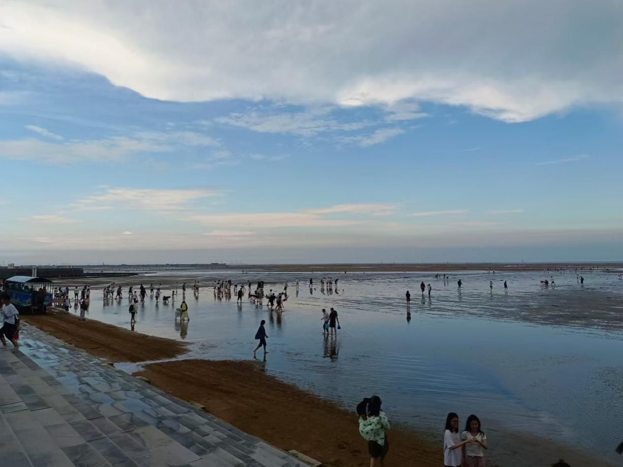 6月29日上午,实习队在万平口沿线开展海岸线利用方式调研,通过徒步与乘船相结合的方式实地考察了滨海旅游、生态保护与城市景观协调布局的情况,了解了“港城融合”背景下海岸带空间的多功能开发模式。下午,实习队师生在刘家湾赶海园开展海洋滩涂养殖与旅游产业协同发展的调研。通过现场观察与体验,大家体会到了滩涂资源推动渔业发展、旅游增效中的重要作用,深化了对生态保护与产业协同发展并进意义的认识。