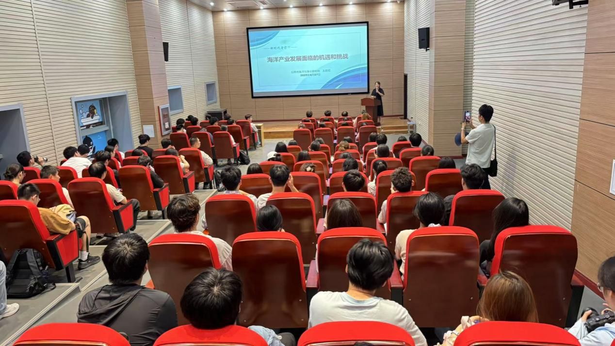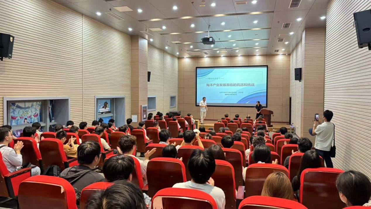 下午,实习队师生根据不同年级分批次在日照市海洋局科普标本馆开展学习活动。全体师生集中聆听了日照市海洋与渔业研究院院长王君霞所作的题为《新时代背景下——海洋产业发展面临的机遇和挑战》的专题报告,并参观了海洋科普展览。在报告中,王君霞系统梳理了我国海水养殖产业经历的“五次浪潮”发展脉络,深入分析了养殖技术革新、生态风险防控与产业结构优化之间的协同演进关系。她指出,当前海洋渔业正处于转型升级的关键阶段:一方面,居民消费水平提升和健康理念普及正推动产业结构向绿色养殖、功能水产、休闲渔业等方向拓展;另一方面,在国家“蓝色粮仓”战略和“十四五”海洋经济规划等政策引领下,产业发展正加速迈向高端化、集群化、低碳化与智能化。她强调,这种多维度、深层次的转型升级,正使海洋渔业日益成为驱动区域发展与构建生态经济体系的重要新增长极。