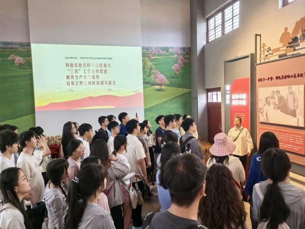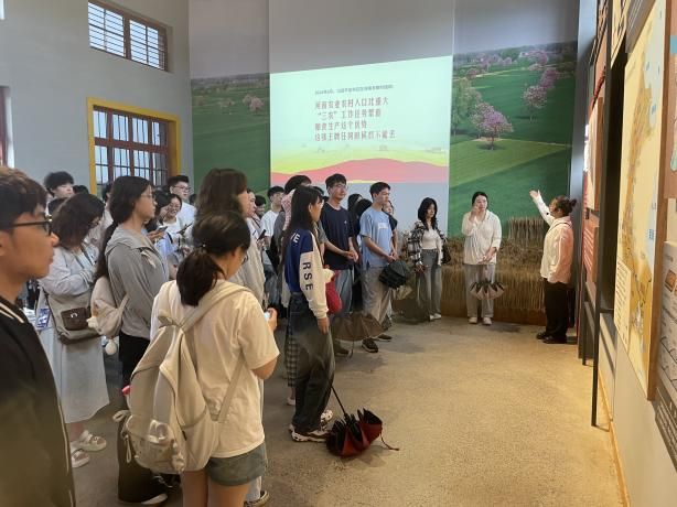 7月2日上午,实习队前往东坝头镇毛主席视察黄河纪念处与张庄村。在东坝头毛主席视察黄河纪念处,师生们聆听1952年毛主席“要把黄河的事情办好”伟大号召的历史回响,深切体悟黄河安澜对兰考及国家发展的战略意义,上了一堂生动的国情教育课。在张庄村,行走在焕然一新的街巷,师生们亲眼见证脱贫攻坚与乡村振兴战略给这个村庄带来的翻天覆地变化,感受张庄人如何用实干在新时代擦亮焦裕禄精神这块“金字招牌”。