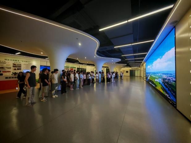 7月1日下午,实习队开启产业与城市发展调研。在兰考城市会客厅,师生们系统梳理兰考从“贫困县”蝶变为“全国文明城市”的发展密码,重点研习其“一核三带九区”空间发展战略的规划逻辑与实施成效;在中原家博馆,实地调研家居产业如何从分散“小作坊”跃升为整合“全链条”,深入分析“总部+基地”模式驱动200余家配套企业集群发展的内在机制;在国电投新能源产业园,考察“源网荷储一体化”示范项目,亲身体验光伏电站、储能系统与工业园区的智能协同如何为资源型地区转型提供可复制的“兰考方案”。