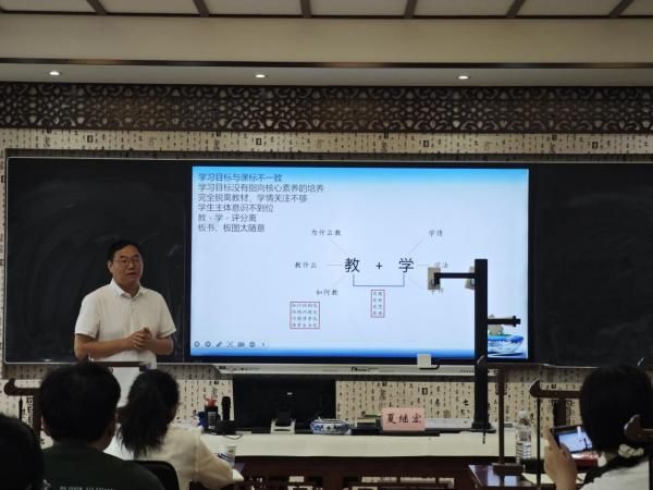 比赛结束后,五位评委老师从教姿教态、情境创设、板书板画、教学评一致性等方面对同学们的教学技能进行了评析与总结。其中三位中学老师还针对师范生教学技能培养做了专题报告。赵丽霞老师以“让地理教学回家”为题,围绕教学的主题设置、情境创新和跨学科教学展开深度剖析,以水资源与人类发展的相关案例为载体,强调要构建指向核心素养培养的主题式教学、指向问题解决的情境化教学、指向协同育人的跨学科教学,有效拓宽学生的思维,促进学生地理学科核心素养的达成。贾惠敏老师围绕“教师教学技能培养”,从教学设计、教学实施、学科知识等方面展开深入分享。她强调教师需构建扎实的专业根基、精准把握课标要求、融合探究式与小组合作学习模式,“要让地理课堂既接地气,又充满思辨魅力”。夏继宏老师以“核心素养下地理课堂教学重构思考”为主题,围绕教学设计的关注点、学科核心素养的形成机制、学科核心素养下教学观的重构、问题式教学模式探讨四个模块进行分享。夏老师通过工业的区位因素和地域文化两个案例剖析教材的二次开发,强调将知识结构化,助力提升同学们的备课与上课技能。最后,张广花老师对本次大赛进行了总结,再次肯定了同学们的精彩表现,并希望各位同学在未来的学习中持续精进教学技能,努力成为高素质、专业化、创新型的地理教师。