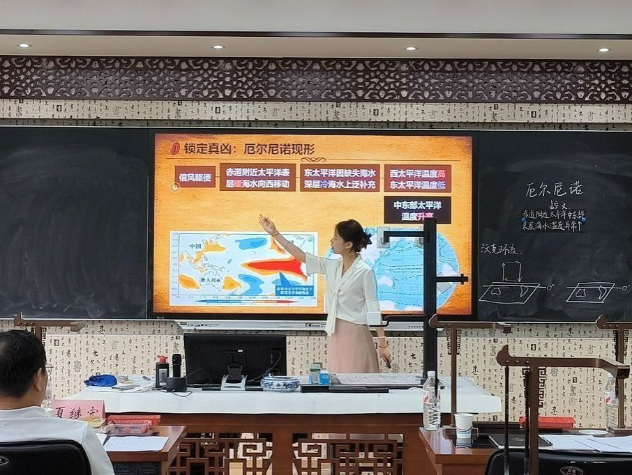 比赛过程中,同学们的教学设计亮点纷呈。如:巧妙借助地理模拟实验,增强课程的直观性与生动性;高度重视乡土地理资源的开发利用;注重地理信息技术应用,运用GIS进行区域地理数据可视化分析,通过GPS模拟定位追踪台风的路径,借助RS影像解读自然地理中的泥石流灾害发生前后的变化,有效提升了教学的科技感和精准度。此外,部分同学还引入“全球气候变化”“碳达峰碳中和”等热点话题,紧跟时代潮流,有机融入思政元素,引导学生逐步树立正确的世界观、人生观和价值观。