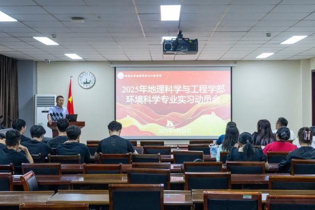 6月26日,实习队组织开展动员会。会上,带队教师李涛表示,此次活动是学部“文理结合、校地结合”育人模式的重要实践,他要求学生在实习期间应严守纪律、团结协作,将课堂所学与环境规划宏观思维、环境影响评价技术方法深度融合,在真实场景中提升解决“经济与环境矛盾”的综合能力,展现地理学子的良好风采。赵庆良则就本次实习的日程安排进行详细说明,强调野外考察期间需着装适宜、携带必备工具,并现场解答了学生关于实习报告撰写及考核要求的相关疑问。