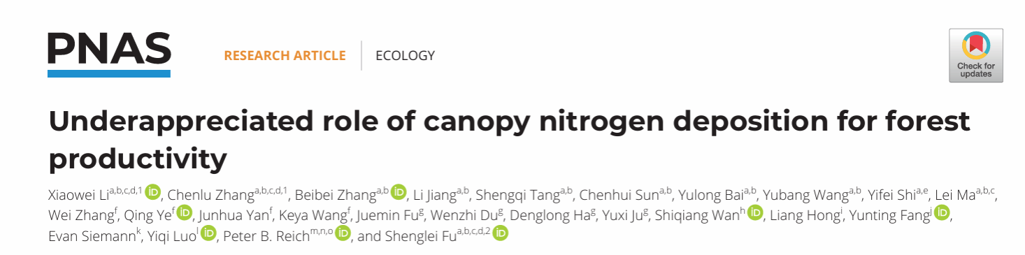 地理科学与工程学部傅声雷教授团队题为Underappreciated role of canopy nitrogen deposition for forest productivity的最新研究成果。该研究依托河南大别山森林生态系统国家野外科学观测研究站,通过一项长达十年的大规模野外控制实验,首次系统量化了“冠层氮沉降”在提升森林生产力和碳固存中的关键作用,解决了该领域长达数十年的科学争议,为准确评估全球森林碳汇潜力、完善气候变化模型、服务“碳中和”战略目标提供了重要的科学依据。