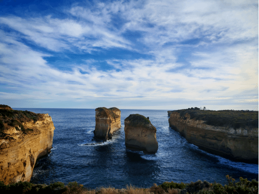 上午,实习队途径斯普利特角灯塔,顺利抵达大洋路起点标志。大洋路位于澳大利亚墨尔本西部,最初是为第一次世界大战澳大利亚归国军人提供就业机会的工程项目。大洋路于1919年开始动工,1932年全线贯通后将沿途241公里海岸线上的城镇悉数连通,20世纪80年代初正式被定为国家自然公园并开始对游客开放。如今,这条公路已发展成为世界上最美的滨海公路之一。期间,Inessa向实习队成员介绍了该地区的地质地貌特点,她特别提到,近几十年来,在盛行西南风的强烈作用下,该地区部分地点的水平海岸线后退已经超过了10米。这一现象让实习队成员直观感受到海洋对海岸地貌的塑造作用,深化了对地表形态演化动态性的认识。