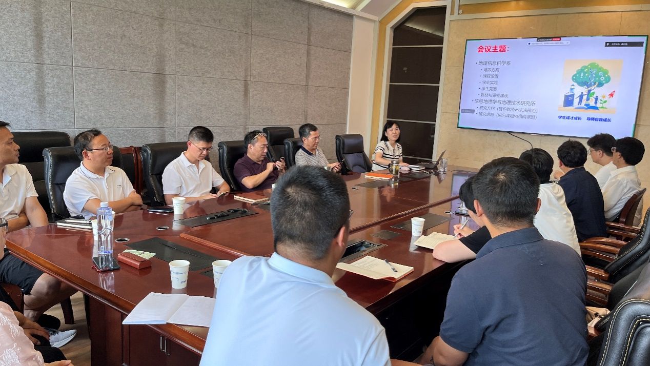 地理信息科学系在地理科学与工程学部地学楼402会议室召开地理信息科学系暨信息地理学与地理技术研究所全体教师会议。会议由地理信息科学系系主任、信息地理学与地理技术研究所所长翟石艳主持。