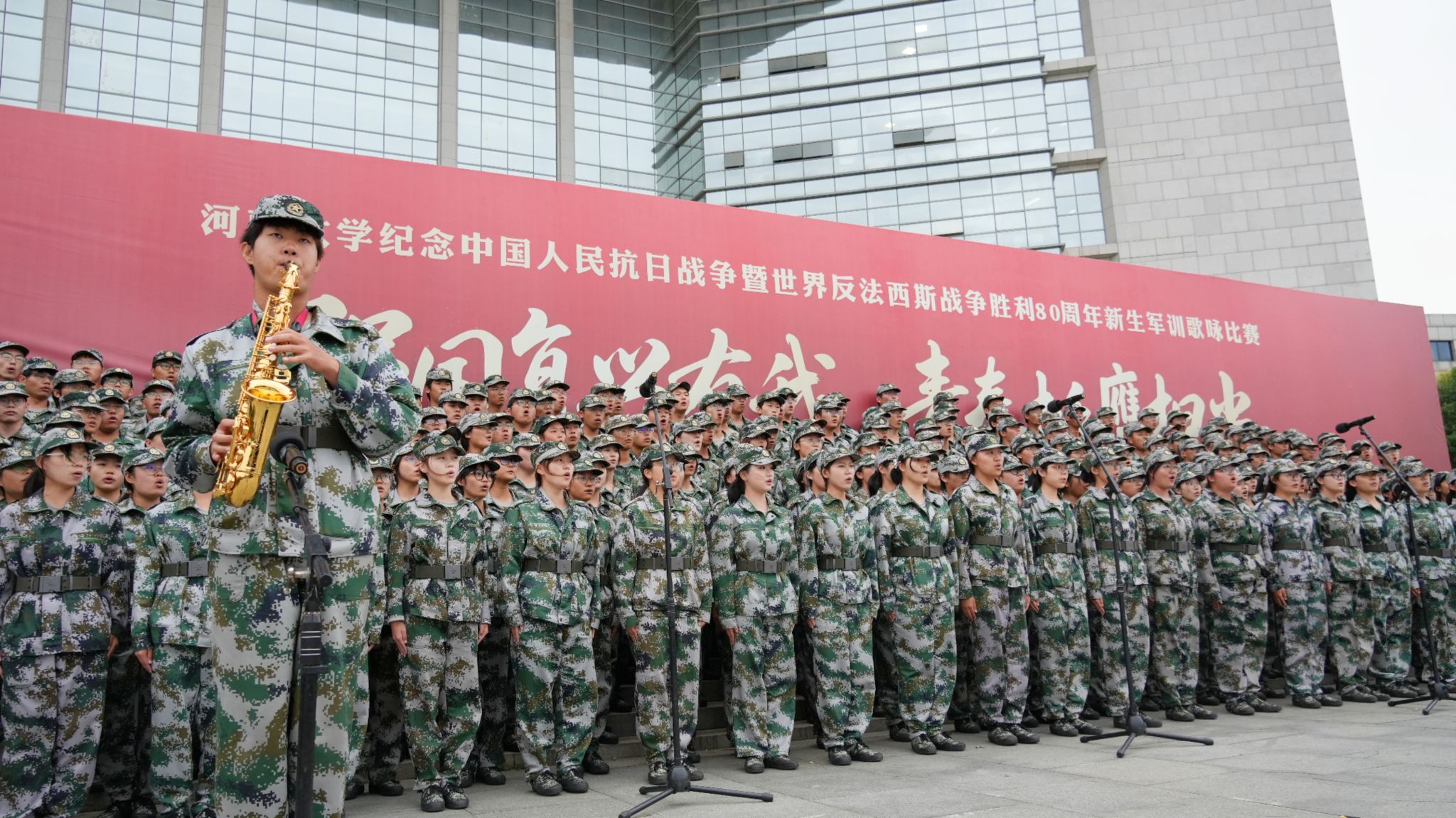 纪念中国人民抗日战争暨世界反法西斯战争胜利80周年新生军训歌咏比赛分别于金明校区图书馆前明德广场、明伦校区东操场、郑州龙子湖校区体育场隆重举行。本次歌咏比赛主题为“强国复兴有我,青春挺膺担当”。小说狂人