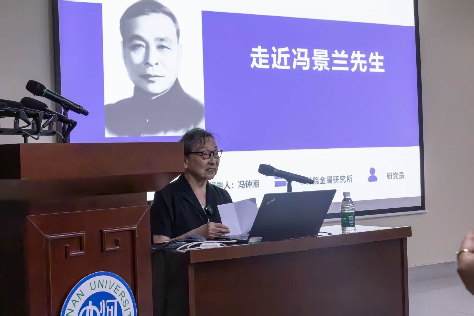 地学专业创始人冯景兰先生之女中国科学院金属研究所研究员冯钟潮应邀作题为《走近冯景兰先生》的专题报告。学部百余名师生参会,报告会由学部委员潘少奇主持。