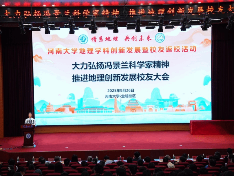 地理学人“守正创新、追求卓越”的学术品质与科学精神。他指出,近年来学校紧抓国家双一流建设、河南高校“双航母”建设叠加的重大历史机遇,围绕强理振文、新工新医的发展主线,努力争做国家事、入国家队,地理学科是我校的“1+5”筑峰学科之一,学校对地理学科寄予厚望。他提到,地理科学与工程学部成立以来通过规划建设景兰苑,创设景兰报告厅、景兰论坛等系列措施,弘扬冯景兰先生等老一辈科学家的精神,厚植家国情怀;并通过强化学科交叉,推进有序的科研,在回应中国式现代化建设实践中持续提升地理学科的核心竞争力和社会贡献力。他呼吁校友持续关注学科发展,在人才培养、科研合作等领域深化与母校的联系,共同推动我校学科核心竞争力提升和地理学科创新发展,为我校建设研究型、综合性、国际化、世界一流大学作出新的贡献。最后,他预祝本次大会圆满成功,祝愿小说狂人