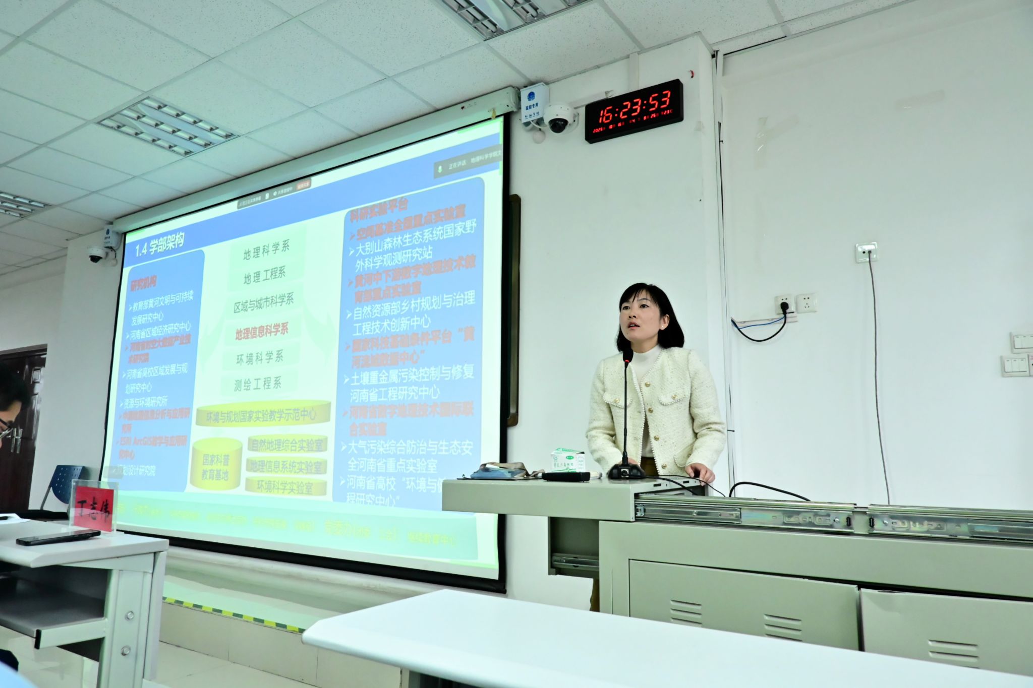 随后各系主任展开专业解读。朱文博介绍地理科学专业始终以师范培养为核心定位,围绕“师德-学识-育人-发展”构建四维培养目标。她提到,“师德”是教育初心的根基,“学识”聚焦地理学科核心知识,“育人”通过微格教学等实训锤炼授课能力,“发展”则依托国际交流项目拓宽视野。为让培养目标落地,地理科学专业不仅搭建了嵩山、日照等高水平实习基地,助力学生将理论转化为实践认知,更在国家级竞赛中收获亮眼成果,用实绩印证了该培养体系的扎实成效。