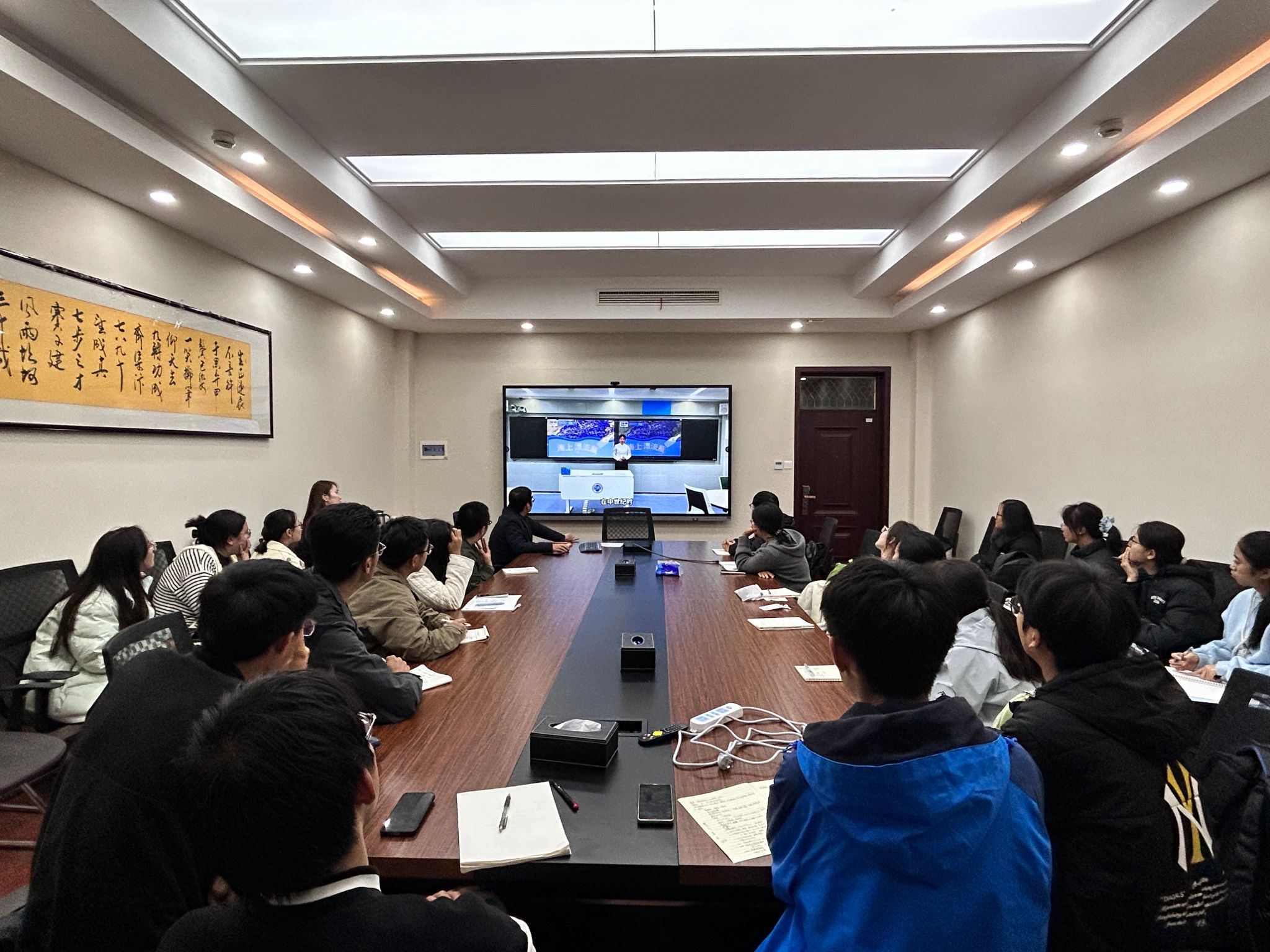 课程第二环节是理论学习。在丁志伟的带领下,全体师生共同学习了刚刚发布的《中共中央关于制定国民经济和社会发展第十五个五年规划的建议》(“十五五”规划建议)的重要精神。他一方面系统介绍“十五五”规划建议的主要内容,另一方面结合地理学科专业特色对规划建议中涉及的区域协调发展、生态文明建设、乡村振兴、美丽中国等重大战略进行了深入解读。他勉励同学们要将个人专业学习与国家发展需求紧密结合,把论文写在祖国的大地上,为实现中华民族伟大复兴贡献地理学人的智慧和力量。