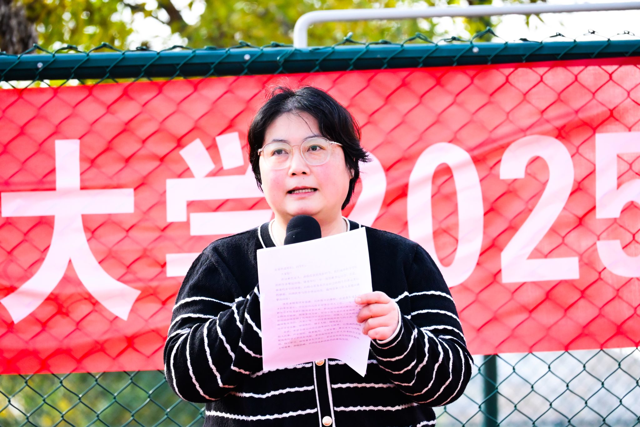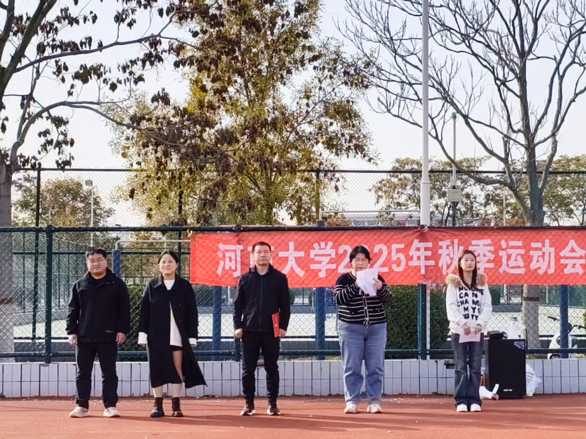 冯文璐表示,秋运会不仅是学生们展现风采,释放运动热情的舞台,更是弘扬体育精神,凝聚集体力量,促进全面发展的重要载体。她希冀学生能将在赛场上激发出来的拼搏精神,竞争意识和团队观念带到今后的学习,工作,生活中去。裁判长郭新豪、运动员代表郝征带领全体运动员分别进行宣誓。最后,徐小军宣布本届秋季运动会开幕。