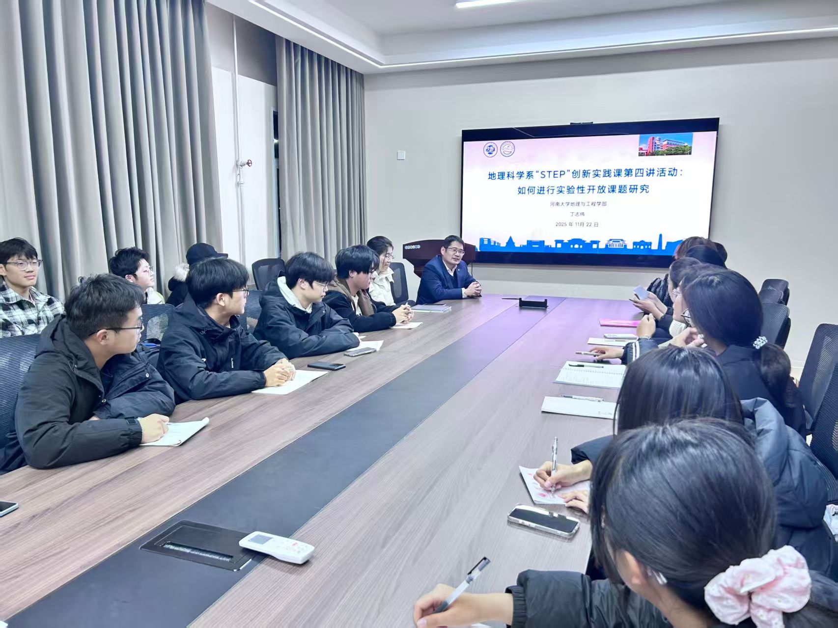 11月22日晚上19时,第四讲以“如何开展实验性开放性课题”为主题正式开讲。丁志伟围绕科研创新项目的意义与价值展开深入阐释,从选题逻辑、框架构建、技术支撑三个核心环节进行详细拆解,引导学生精准把握科研课题的切入点与实施路径。他强调,地理学科科研需强化Arc GIS软件、Auto CAD软件、Python软件、统计分析软件、PS制图软件等专业工具的应用,在技能实操中锤炼科研能力;同时鼓励学生克服畏难情绪,主动与导师建立定期沟通机制,严格遵守时间规划提升研究效率,并以追求高远目标、坚定科研初心和保持吃苦毅力为过程性支撑,激励大家积极参与科研汇报与竞赛活动,积累学术实践经验。