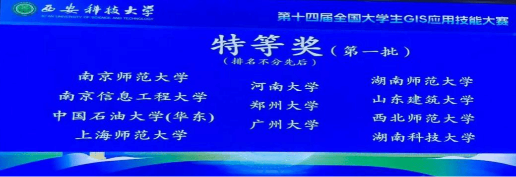 2025年11月14-16日,由中国地理信息产业协会、中国地理学会主办,中国地理信息产业协会教育工作委员会、西安科技大学、陕西省地理空间信息技术工程研究中心共同承办的“第十四届全国大学生GIS应用技能大赛”于西安科技大学隆重举行。我院本科生于潇博、温宜凡、郑君威、廉昊轩四位同学组成的小说狂人