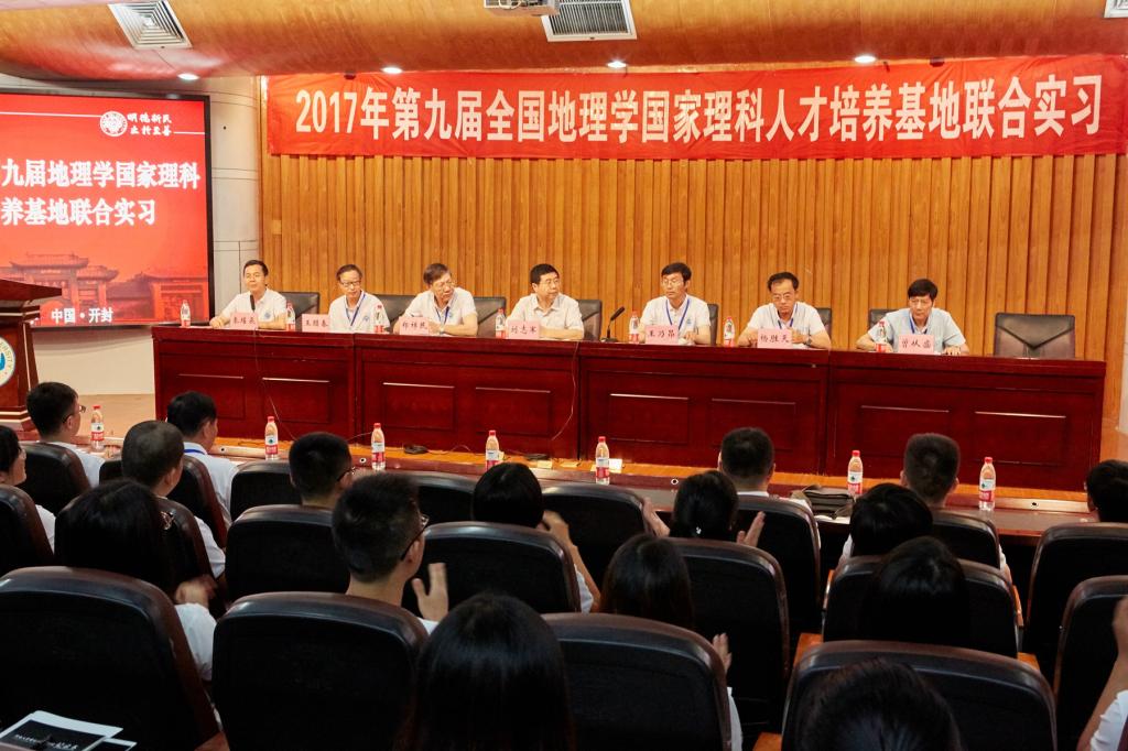 7月29日上午,2017年第九届全国地理学国家理科人才培养基地联合实习开幕式在我校行政楼二楼报告厅召开。全国地理学国家理科人才培养基地联合实习发起于2009年,由国家自然科学基金委和教育部联合资助,本年度由我校牵头陕西师范大学、西北大学和信阳师范学院共同承办。来自北京大学、北京师范大学、南京大学、兰州大学、武汉大学、华东师范大学、中山大学,以及台湾师范大学、高雄师范大学等29所高校的130余名师生参加实习。开幕式由我校环境与规划学院院长秦耀辰主持。