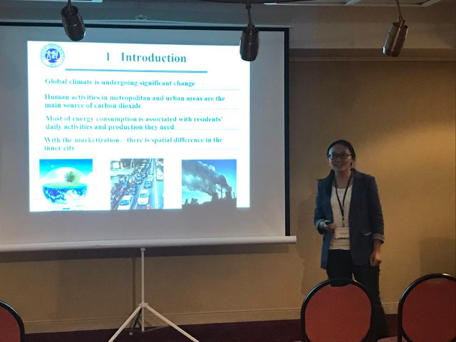来自全球高校、科研机构及GIS企业的代表240多人出席本次会议,环境与规划学院副院长秦明周教授率领我校青年教师、博士研究生,共6人参加了本次会议。会议期间,我校的陈锋锐博士做了题为“A spatial calibration method for satellite-derived precipitation estimates over China”的报告,针对当前标定方法的不足,提出了一种基于空间非平稳关系的空间标定方法,并证明该方法能够大幅度提高标定结果的精度。翟石艳博士做了题为“Research on the spatial and temporal variations of drought in the Bei-bu wheat districts of China between 1960 and 2012”的报告,重点分析了中国北方小麦种植区的干旱条件的时空变化;博士生荣培君做了题为“Spatial pattern of residential carbon emissions based on situated lifestyle theory”,以开封市为案例分析了城市居民碳排放空间差异及居住区空间形态对碳排放的影响,这些报告均引起了与会学者的讨论。