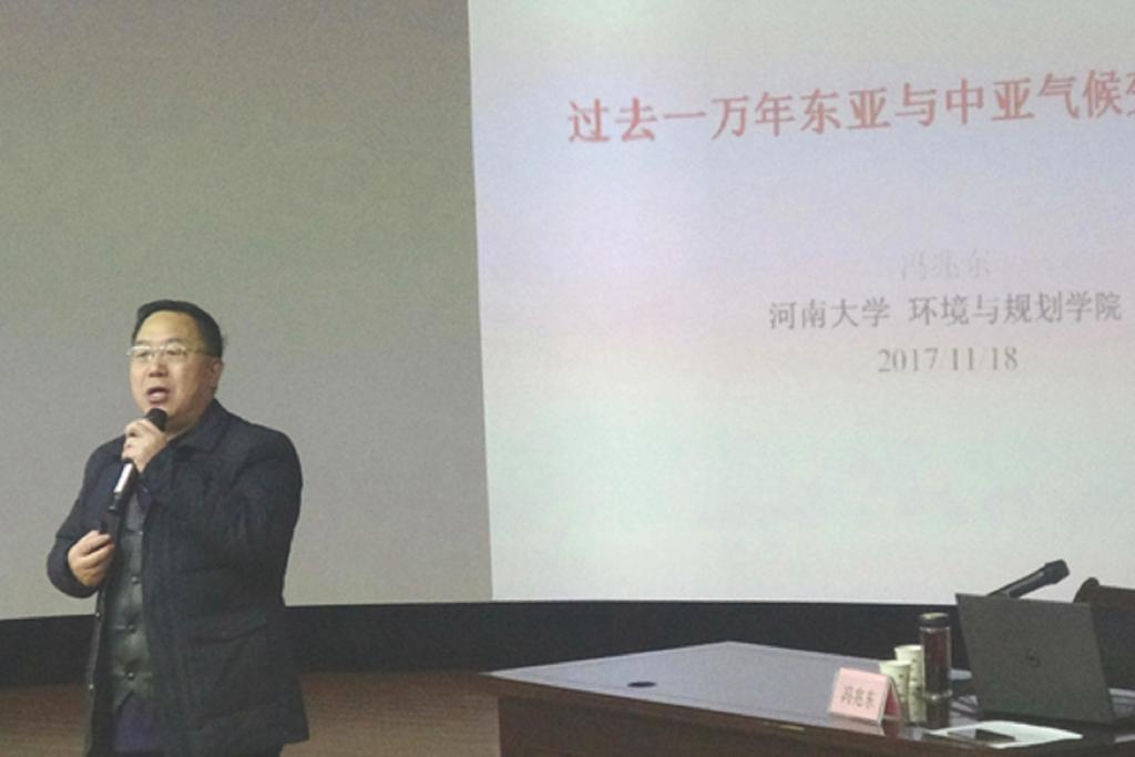 特聘教授冯兆东教授以“过去一万年东亚与中亚气候变化研究”为题,全面探讨了东亚与中亚气候变化与全球变化的相互关系及其过程、影响因素等,丰富的图表、生动的语言吸引了听众。