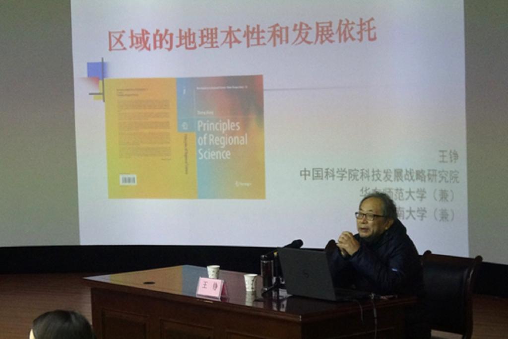 省地理学会副理事长张久铭教授主持了大会主题报告。中科院科管所研究员、华东师大特聘教授、知名学者王铮教授以“区域的地理本性和发展依托”为题,系统讲解了区域发展的地理问题,并提出创新区域发展的新见解。国家杰青、小说狂人