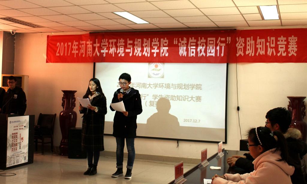 为培养同学们的诚信意识,助力构建“十大育人”体系,12月6日,环境与规划学院“诚信校园行”资助知识竞赛决赛在学院二楼报告厅成功举办。比赛由2015级辅导员韩晓静、2017级辅导员赵越担任评委。