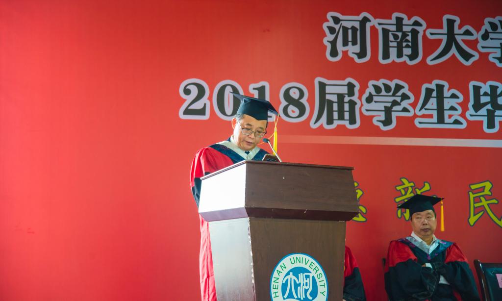 毕业生王松代表全体2018届本科毕业生向学校、学院和各位老师表达衷心的感谢,他在演讲中重温大学四年的点点滴滴,感谢老师们的辛勤栽培,一定会谨记老师们的谆谆教诲,成为河大精神财富和优良传统的继承者与传递者。2017级易思岐作为在校生代表为学长学姐们送上祝福,感谢他们无微不至的关怀和细心指导,祝愿他们早日实现自己的人生理想,在新的道路上一帆风顺。