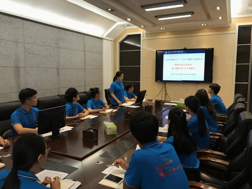 垃圾分类是习近平总书记高度重视、亲自部署、着力推动的“关键小事”,为深入贯彻党的十九大关于新时代生态文明建设相关精神,积极响应国家对于垃圾分类工作的指示,追随当代大学生走进生活、深入社会进行实践的时代潮流,我院十余名学子组建“推进垃圾分类处理,助力新时代生态文明建设”美丽中国实践团,由各个年级不同专业的本科生、硕士研究生和博士研究生共同组成,着力于对开封地区居民关于垃圾分类了解程度的现状及环保意识进行调查。本次调研由我院院长傅声雷教授担任指导老师,熊小波担任带队老师,2019年7月10日下午,为确保本项目的顺利进行,在调研项目正式启动前,团队在我院四楼研讨厅进行了调研培训会,对相关任务进行了部署。