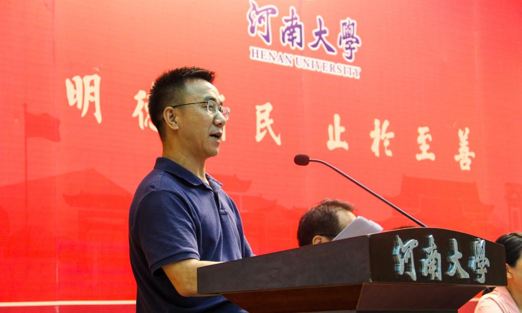 在校生代表2018级土地资源管理专业硕士研究生张宇,新生代表2019级地理科学专业本科生金艺辰同学相继发言。