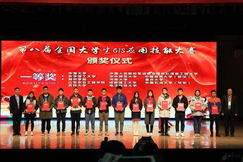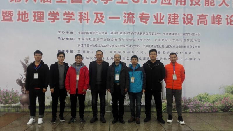2019年11月23日至11月25日,由中国地理信息产业协会、教育部地理科学类专业教学指导委员会、中国地理学会等主办的第八届全国大学生GIS应用技能大赛在安徽师范大学成功举办。环境与规划学院代表队代表我校参赛,参赛学生王紫恒、延炳奇、王尧斌、马世豪在郑辉、宋宏权老师的带领下荣获大赛一等奖。