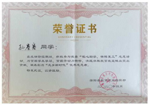 新冠肺炎疫情发生以来,我国疫情防控取得阶段性成果,随着各地复产复工复学进程不断推进,在孙赛赛的家乡濮阳县,却有这样一群孩子陷入困境:许多贫困家庭的孩子由于父母复工,独自在家的他们无法正常完成课业。在濮阳县政府的号召下,众多高校大学生加入了当地政府的“暖心助学,保障复工”志愿活动,为贫困学生提供网课辅导、作业答疑及学习陪伴等志愿活动,孙赛赛就是活动的志愿者之一。