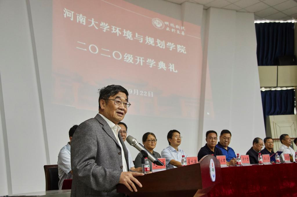 的办学历史,他更是慷慨激昂地给予了十二字铿锵有力的评价“经历困顿、负重前行、筚路蓝缕”;在英雄文脉方面,王发曾教授着重讲述了新的河大精神 :面向世界,前瞻开放;坚持真理,追求进步;百折不挠,自强不息;兼容并包,海纳百川;不事繁华,严谨朴实。最后,王发曾教授对2020级新生表达了殷切的祝愿,期望他们可以“像个‘铁蛋’一样,有鲜明的心,有坚不可摧的骨气。”希望他们可以“为天地立衷心,为先贤传真学,为人民谋幸福,为后世立太平。”
