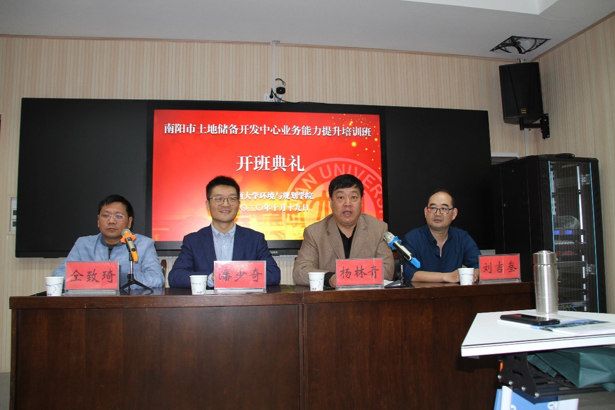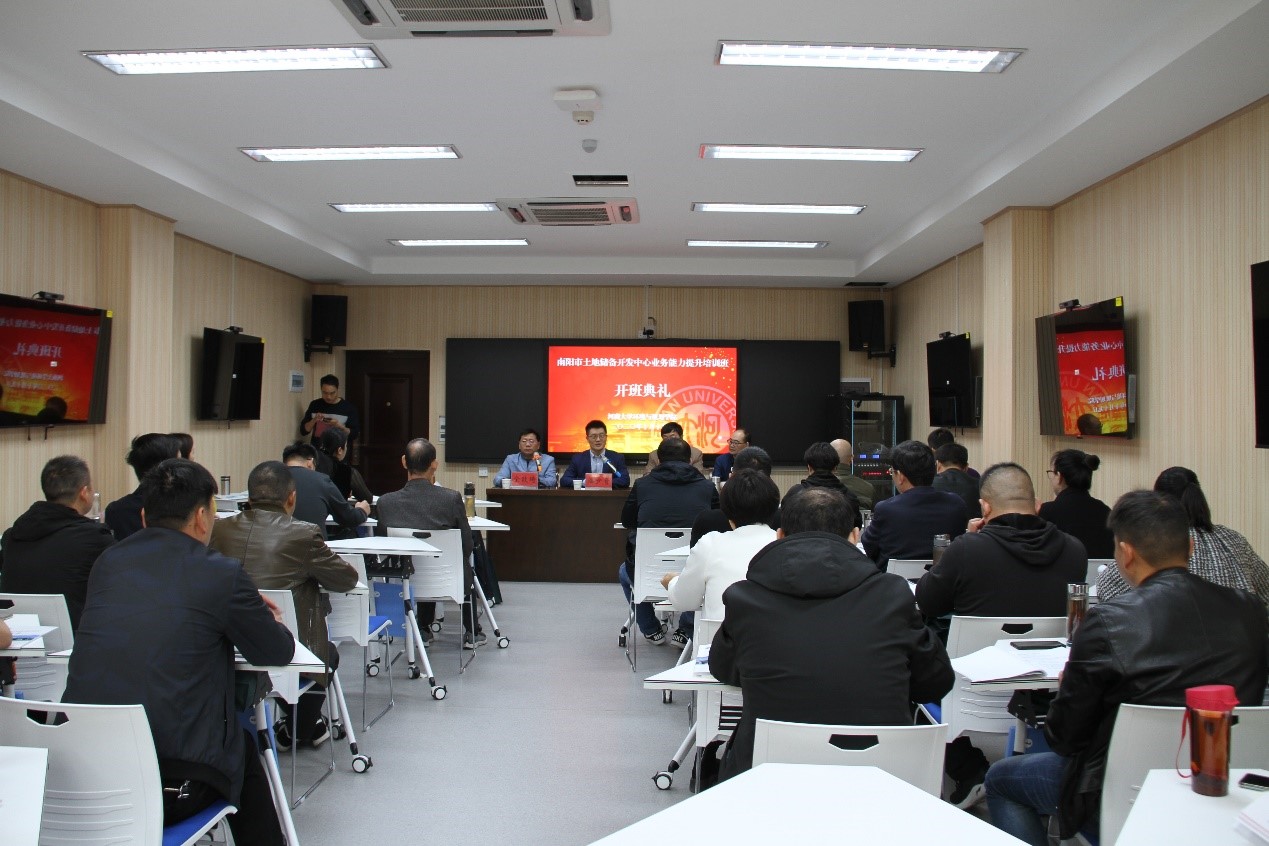10月19日上午,南阳市土地储备开发中心业务能力提升培训班开班典礼在金明校区综合楼1号楼101教室举行。南阳市土地储备开发中心主任杨林青、副主任刘吉叁,学院副院长潘少奇出席典礼。典礼由学院继续教育中心主任仝致琦主持。