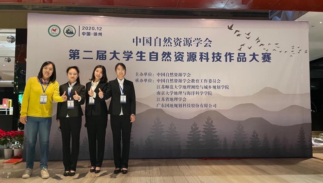 2020年12月19日-20日,中国自然资源学会第二届大学生自然资源科技作品大赛在江苏徐州举行,我院2018级晋炳燕、陈惠心、李佳滢、范斯喆四位同学在高文华老师的指导下代表我校参加,并荣获二等奖。