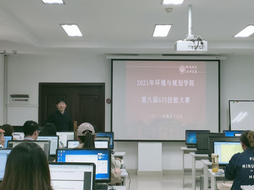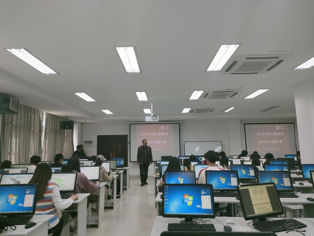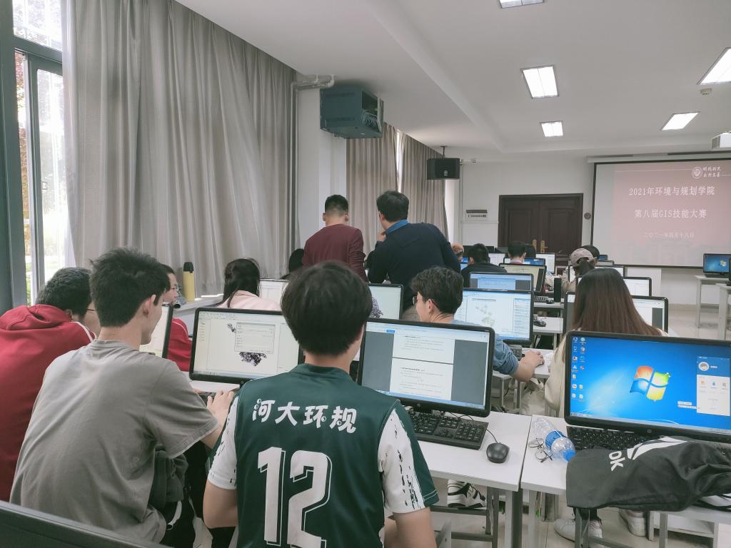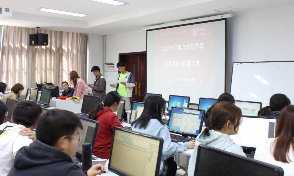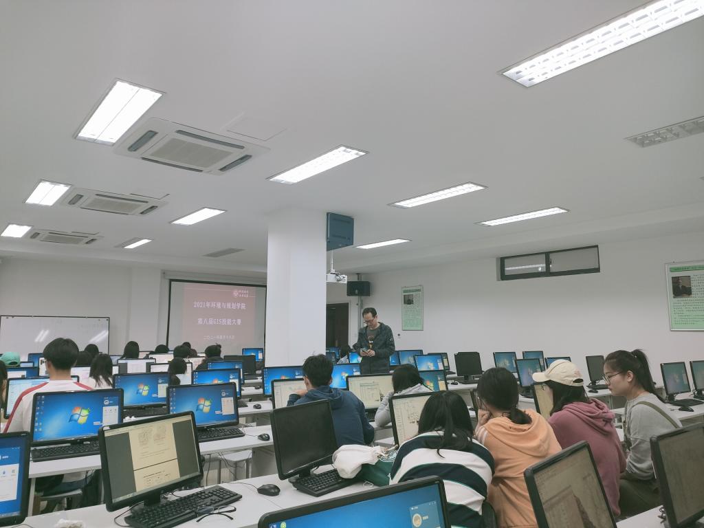 金明校区综合楼114机房举办环境与规划学院第八届GIS技能大赛。本届大赛以“发展GIS,畅享智能”为主题,赵永老师和郑辉老师担任主监考员,院团委学生会协助比赛工作。