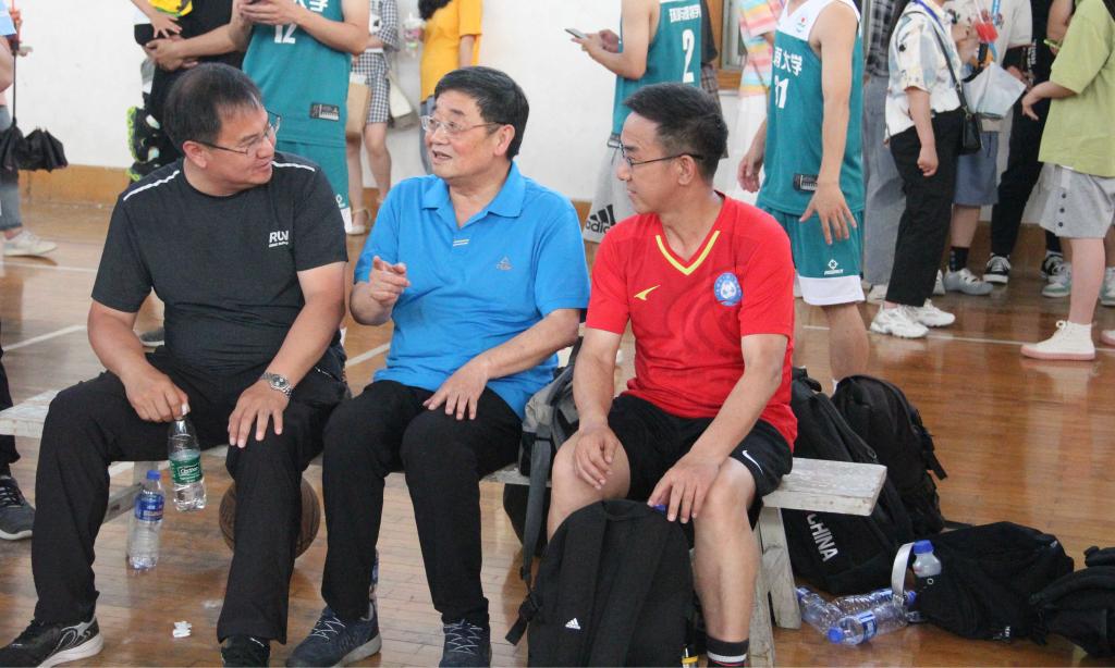 下半场,对方调整阵型,改变战术,奋起直追,我方保持进攻节奏,成功瓦解对方犯规战术,大比分拿下比赛胜利。在第三节比赛中,77号吕天琦抓住对方防守空挡,空位飙进三分,场上掌声、呐喊声骤起。随后我方球员与对面紧张地拉扯,采用迂回战术,以严密默契的配合、灵活敏捷的走位,连续拿下了多个两分球,而对方进攻端哑火,只得赔上犯规来压制我方进攻火力,对方节节败退,分差被持续拉大。最终,我院以压倒性的优势拿下胜利,夺得本届“河大杯”男篮总冠军。最后,王发曾教授为双方球队颁奖,并与到场老师一同合影留念。