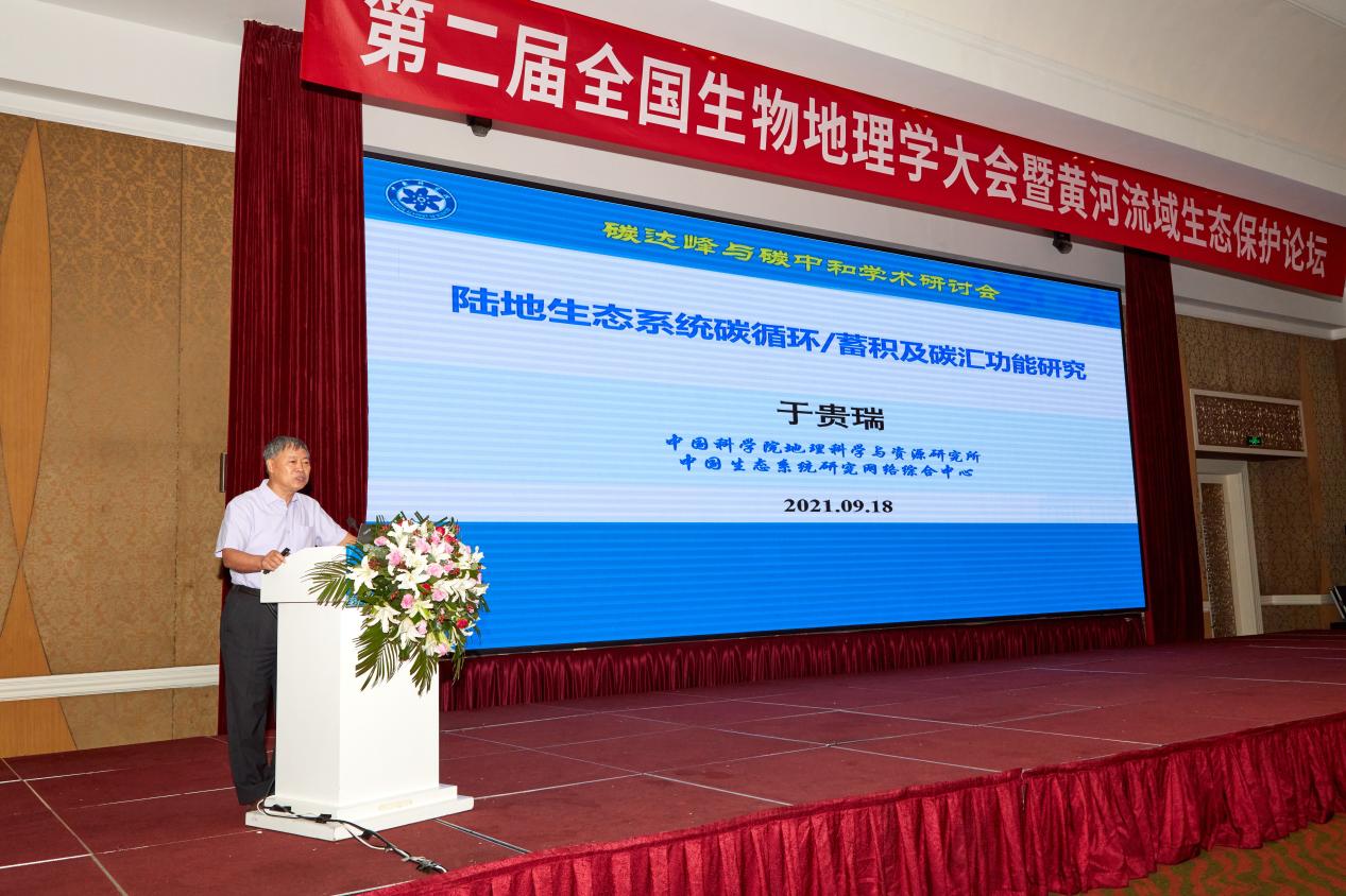 中国地理学会秘书长张国友主持第二阶段会议。中国科学院地理科学与资源研究所于贵瑞院士、中国科学院院士朱永官分别作特邀大会报告。于贵瑞院士以“陆地生态系统碳循环/蓄积及碳汇功能研究”为题,介绍了二十世纪后期,生态系统与全球变化互馈机制成为地球系统科学前沿研究领域,生态系统的能量和碳氮水通量观测被认为是获取直接观测数据的有效途径等内容。朱永官院士以“氮循环微生物生态学的若干前言”为题,总结出中国农业生态系统氮投入过量,且通过多同位素耦合解析酸化对沉积物N2O释放通量及来源路径分析等科学问题。另外,七位国家杰出青年科学基金获得者分别以“土壤中植物和微生物组分的区域性分布差异” “全球尺度下的植物水力性状研究” “矿物保护和微生物属性调控冻土碳分解及其温度敏感性”“稻田甲烷厌氧氧化对气候变化相应”“中国陆地植被功能生物地理分布”“冬季增雪对草地群落结构与碳氮循环的影响”和“关键植物性状的地理格局及其与环境的关系”介绍了相关领域的最新进展。